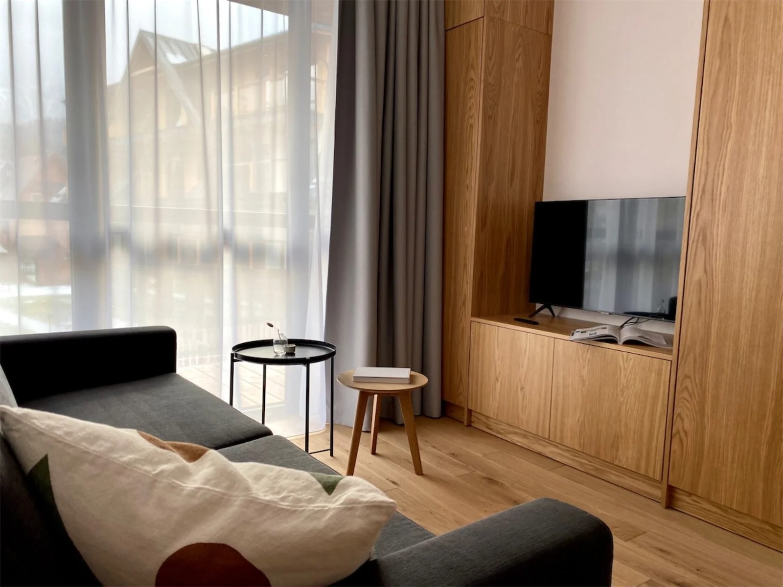 W dwóch budynkach stworzonych w oparciu o klasyczny witkiewiczowski styl wsparty nowoczesną formą rozmieściliśmy 25 niezależnych apartamentów. Każdy z nich posiada aneks kuchenny, łazienkę z prysznicem, sypialnię oraz balkon lub taras, a te zlokalizowane na parterze prywatny ogródek.